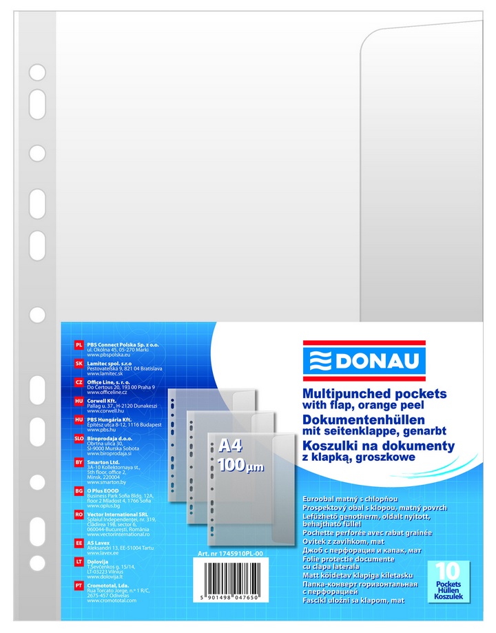 Koszulki DONAU z klapką A4 wykonane z miękkiej matowej folii polipropylenowej o grubości 100µm
